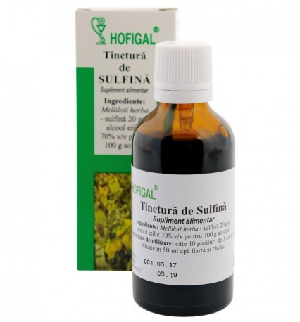 Tinctura de Sulfină 50ml – Hofigal este un remediu natural puternic, recunoscut pentru proprietățile sale antiinflamatorii, antioxidante și detoxifiante. Obținută din plante de cea mai înaltă calitate, această tinctură sprijină sistemul imunitar, favorizează sănătatea hepatică și combate oboseala. Formula sa concentrată asigură o absorbție rapidă și eficientă, reprezentând o soluție ideală pentru echilibrarea stării generale de bine. Hofigal garantează un produs autentic, fără aditivi nocivi, potrivit pentru utilizare zilnică.